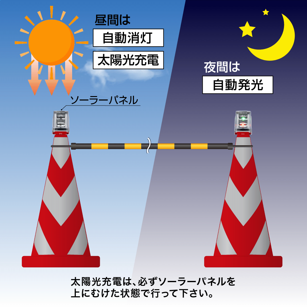 ソーラーパネル搭載 昼間は太陽光充電、夜間は自動発光致します。